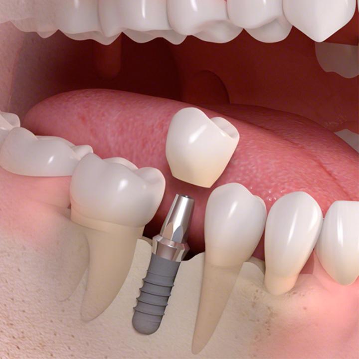 L’implantologie dentaire, c’est la fixation dans l’os d’une racine artificielle en titane qui, émergeant de la gencive, supportera une dent ou un élément prothétique. Le succès est obtenu d’une part avec des investigations radiologiques très précises (scanner) et d’autre part grâce à l’application d’une méthode rigoureuse.